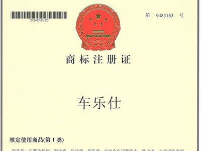 車樂仕商標注冊證